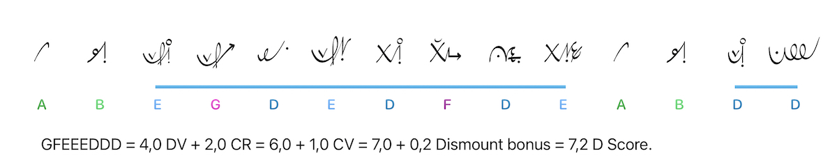 The Difficulty Value view highlights the skills comprising the DV segment of the overall score.